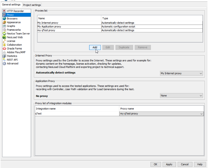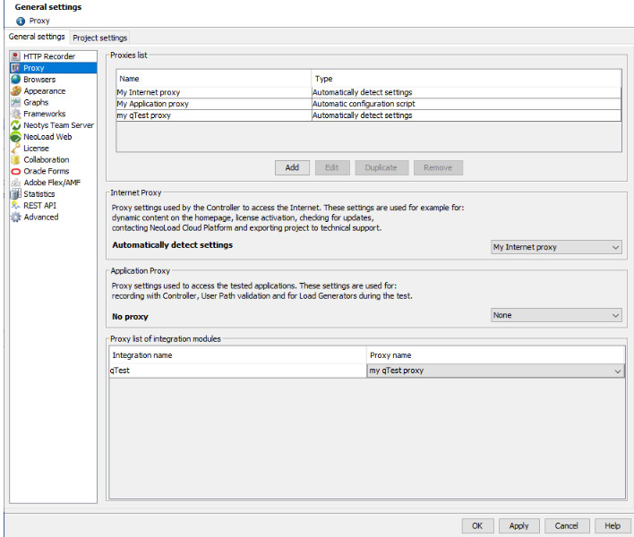 It is also here that you can pick a proxy you created to be used as an Internet proxy and/or as an Applications proxy, or a proxy for an integration module (such as qTest for example).