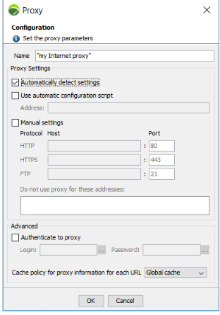 Select one or several configuration options in the Proxy settings group box.