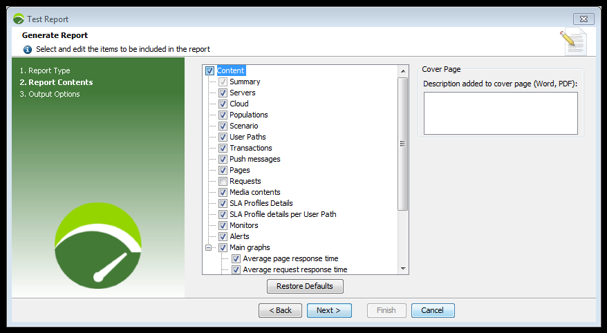 Cover Page. Click on the root of the Content tree to add a comment to the cover page. Only PDF and MS-Word format reports have cover pages.