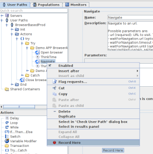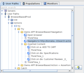 This step surrounds all recorded actions for this user path into a try-catch block. It also adds an extra CloseBrowser action at the end. This improves the error management and ensures browsers are correctly closed at the end of each iteration when a scenario at scale is run.