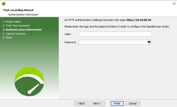 HTTP authentication prompts interactions. Consequently, after recording, you need to set your credentials in the Post-recording Wizard.