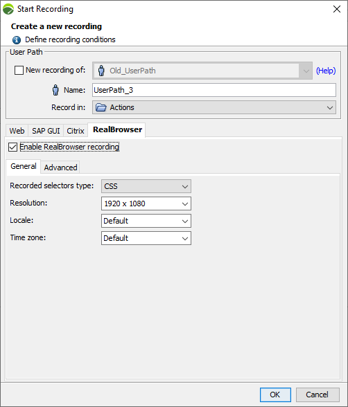 | Use IDs in recorded selectors | When enabled, includes the ID attribute of targeted elements in the list of detected selectors, if available. Disable this option when the target application is known to have dynamic IDs that change between each page refresh. | Boolean | true |