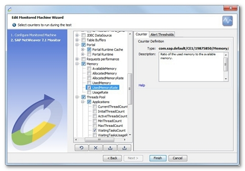 NeoLoad displays a list of the applications deployed on the configured server. It then automatically selects the most appropriate counters for each of the selected applications.
