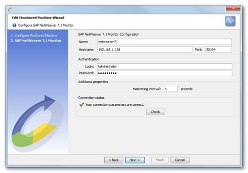 In addition to these settings, a valid user account must be provided if authentication is enabled (same account as the one used to connect to the SAP NetWeaver Administration Console).