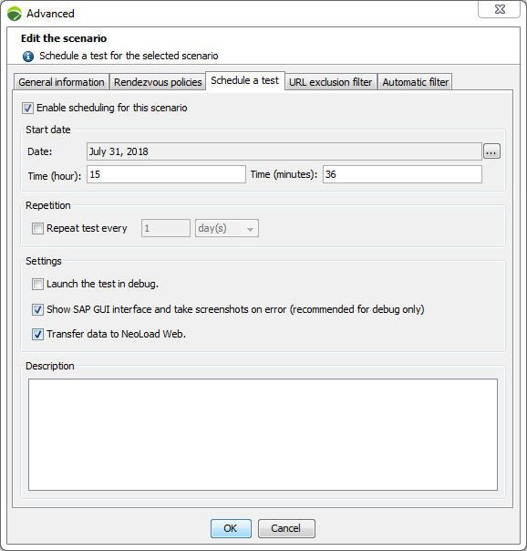 Service Level Agreement: links an SLA profile to the selected scenario. For more information, see Link a scenario to a Service Level Agreement profile.
