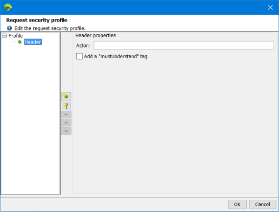 A security header can also be added by right-clicking on the request security profile tree and selecting Add a security header.