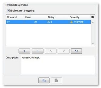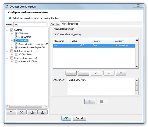 Enable alert triggering: Checking the check box causes alerts to be triggered when the alert thresholds defined for the selected counter are exceeded.