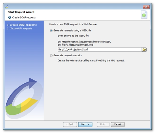Enter the URL containing the WSDL. Use the file browse button to select a file on the hard drive, or enter a web server URL, for example: