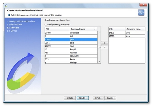 Processes. The processes section counters are available per process. Select the process identifier in the counter definition pane. A process identifier picker is available using the selection button.