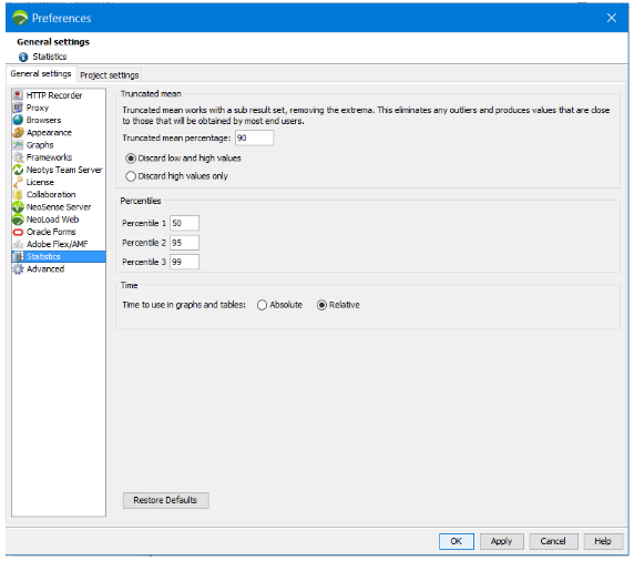 The Statistics panel enables you to configure the statistics displayed in the Runtime and Results sections of NeoLoad.