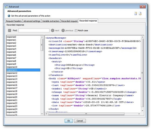 By definition, a streaming request contains a number of server responses. The browser issues a single request and, in return, receives several updates. In the streaming request Advanced section, the Recorded response tab shows a list of all the responses received.