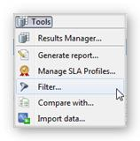 To activate the filtering function, use the Tools button in the Test Summary tab.