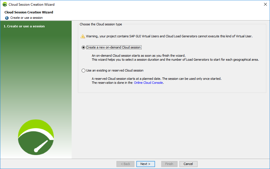 Cloud Load Generators do not support SAP GUI Virtual Users.
