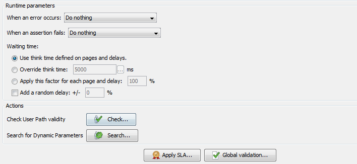 Apply this factor for each page and delay: Selecting this option allows applying a factor to the think time used for the Pages and Delays. For example, by entering a factor of 130%, you can increase the think time for the pages by 30%. A factor under 100% will reduce the pages think time.