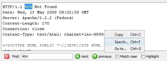 You can easily search for some specific text in the pane containing the error description or the actual request or response by right clicking in the pane and selecting the Search item.
