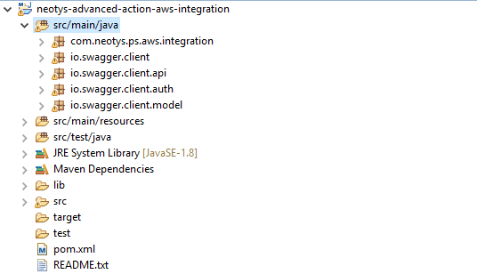 You can find the "pom.xml" file of your Advanced action here: https://github.com/ttheol/NeoLoadTutorials/blob/master/neotys-advanced-action-aws-integration/pom.xml
