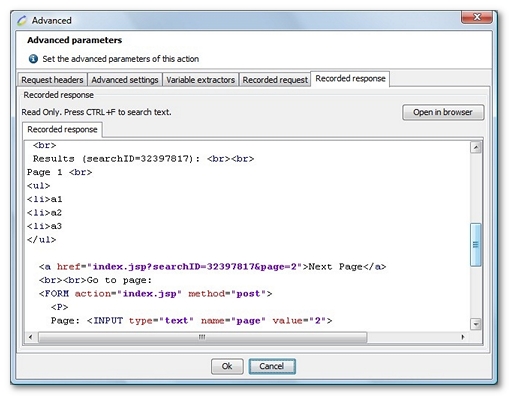 You might obtain this screenshot by selecting the page containing the Next page link. You might then select the HTTP request, click on the Advanced button and select the Recorded response tab.