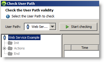 To execute the User Path, we select the tool bar button and click Start checking from the Check User Path dialog.