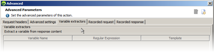 The response can be seen on the rightmost tab. We select the Variable extractors tab and click the + button as we need to extract the generated account number and save it to a variable.