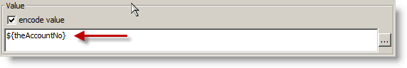 In this example, we use theAccountNo variable rather than a hard coded value. To do this, we select the ellipse button highlighted below.