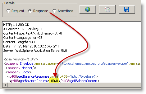 As the test was created based on the WSDL file, we do not have a recorded response in our test, we will use the response above and add it to our test by clicking the Update button on the Advanced dialog.