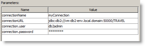 For the SQL connection, we need to specify connection details of the database we are connecting to, in this example we use DB2. The connection URL consists of the host, the port and the database name. We also supply the user name and password we use to authenticate. The "connectionName" is user-defined and links our 3 database actions.