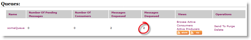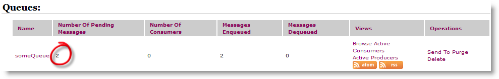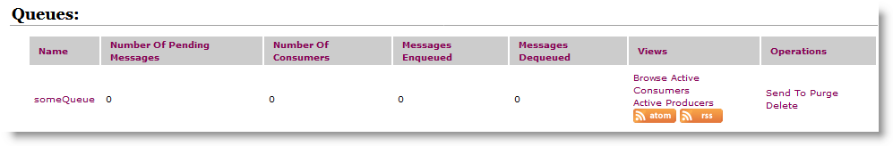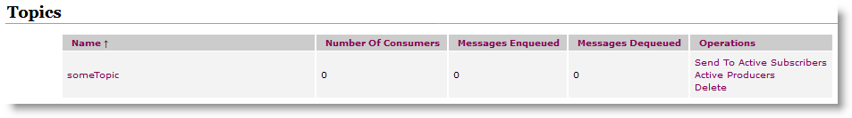 In ActiveMQ we have the following items created: someQueue and someTopic.