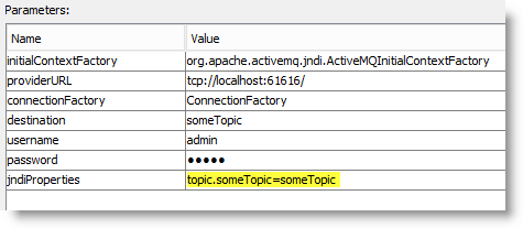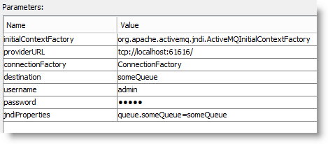 Depending on the queuing technology being used, "InitialContextFactory", "providerURL" and "ConnectionFactory" will vary. Details can be found in the appropriate MQ documentation. The "jndiPropertes" allows us to map the queue name onto the JNDI equivalent.