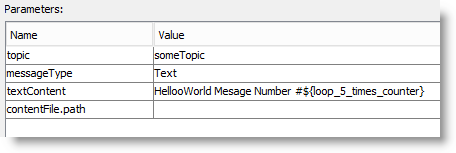 Within our loop, we are publishing messages to the topic. The ${loop_5_times_counter} in the "textContent" refers to the current iteration around the loop, so with 5 iterations, we should publish messages numbered #1 - #5.