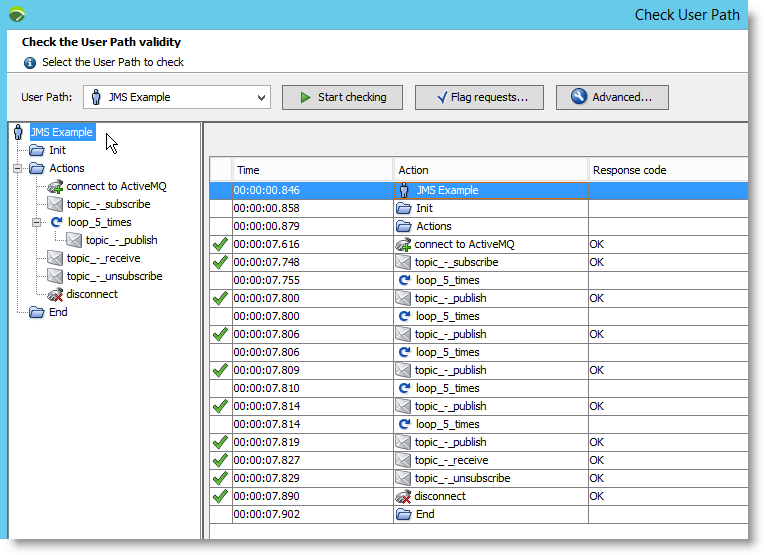 In order to test this, we can execute the User Path by selecting the tool bar button and clicking Start checking.