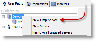 The first step is to create a server entry in NeoLoad for the target system. This is done by right-clicking on the server folder and selecting New HTTP Server.