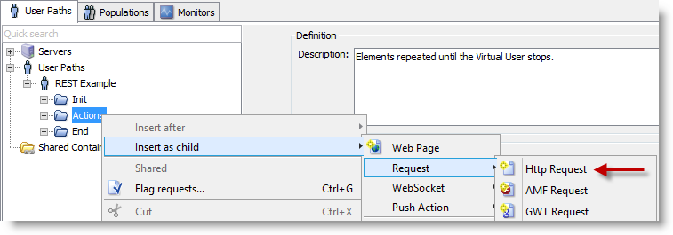 The next steps are to create a User Path and insert a standard HTTP request into the Actions section.