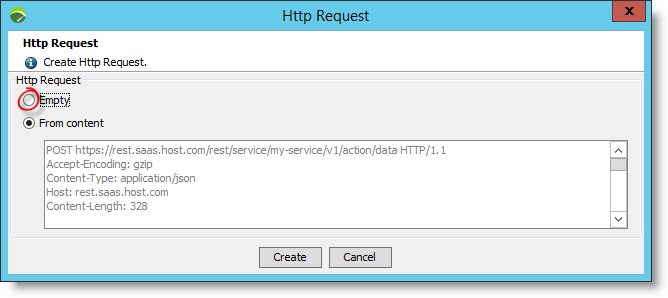 When inserting an HTTP request, users can either paste in content from an external source such as a log or trace file or create an empty entry.
