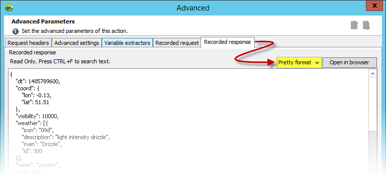 We select the Advanced button to look at the newly updated response.