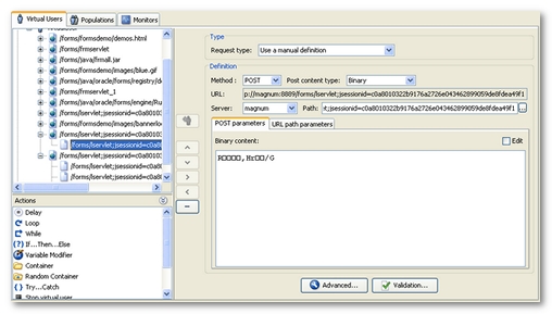 NeoLoad has not identified the Oracle Forms requests. The Oracle Forms requests in the recording look like standard POST binary requests.