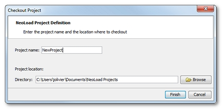 Select from the list the project you want to check out. Once selected, NeoLoad makes it possible to give it a local name. The name can be different from the project collaborative name. By default, the suggested local name is the same as the remote one.
