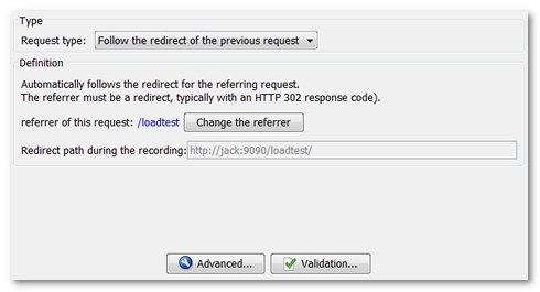 In this mode, it is possible to edit the referrer, in other words the request whose response is the redirect. This request must be located earlier than the current request in the scenario. NeoLoad then displays the redirect URL used in the recording.