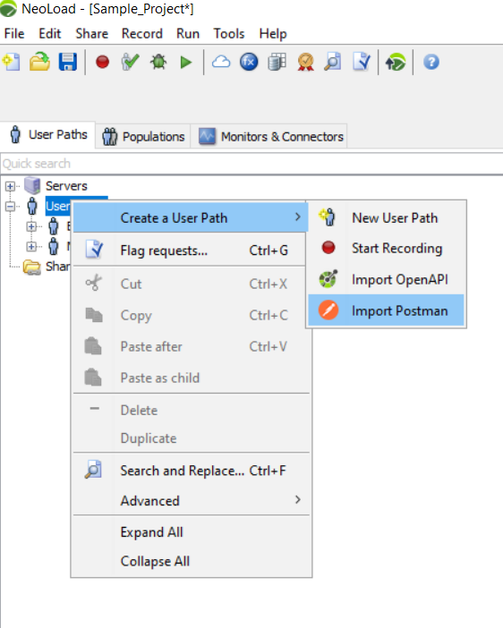 To start importing a Postman collection in NeoLoad, follow these steps: