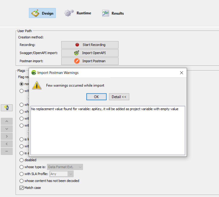 If NeoLoad can't use some items from your imported, it won't stop the import. You'll see a list of any items that couldn't be used at the end of the import.