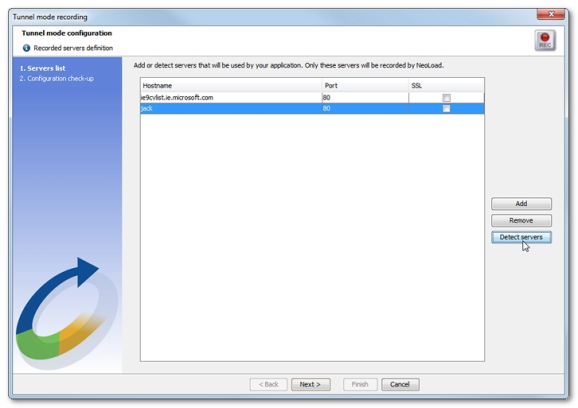 In the Tunnel mode recording wizard, click Detect servers.