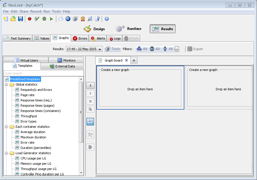 Select a location in a Create a new graph panel and click the > button or drag and drop the item or statistic onto the graph panel on the right.