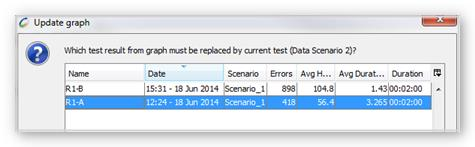 The graph now displays the curves with data coming from the "Data Scenario 2" test result instead of "R1-A".