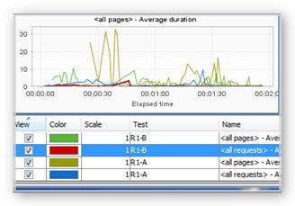 The graph now displays the curves with data coming from the R1-A test result instead of R1-B.