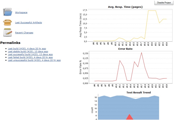 In the graphs, the X axis lists the builds started for the job. When a test fails, the curve is smoothed between two continuous successful tests.