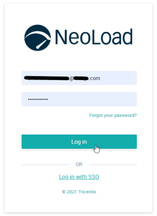 If you are logging into NeoLoad SaaS, you can use your Neotys credentials or use SSO.