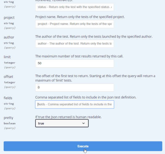 Les réponses sont énumérées sous le bouton Execute.