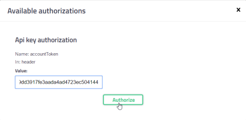 Collez le jeton d'accès dans le champ Value et cliquez sur Authorize.