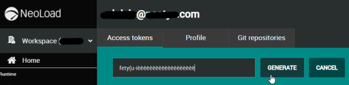 Localisez le jeton d'accès que vous souhaitez utiliser pour configurer la connexion avec Neoload et cliquez sur le bouton Configure NeoLoad with this token situé sur la même ligne.