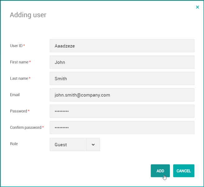 Cliquez sur ADD pour valider la création de l'utilisateur interne.