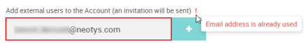Cliquez sur le bouton + pour que l'utilisateur reçoive une invitation à l'adresse e-mail fournie. Cela a également pour effet de sélectionner l'utilisateur dans la partie haute de l'écran.
